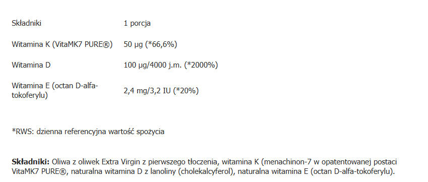 - Połączenie witamin K2 i D3 w wysokich dawkach