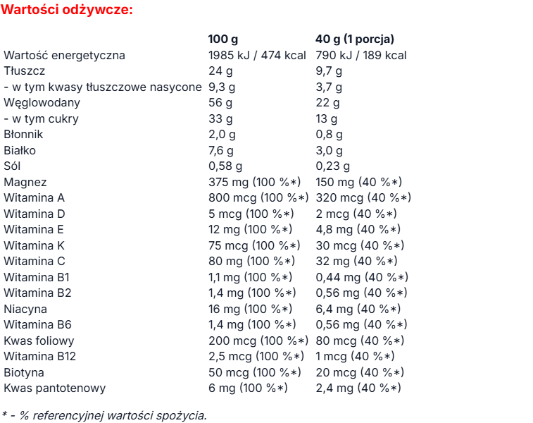 Baton zachwyca wyjątkowym smakiem, który sprawia, że sięgniesz po niego z przyjemnością, a nie z obowiązku. To doskonała alternatywa dla słodyczy, które nie dostarczają wartości odżywczych.