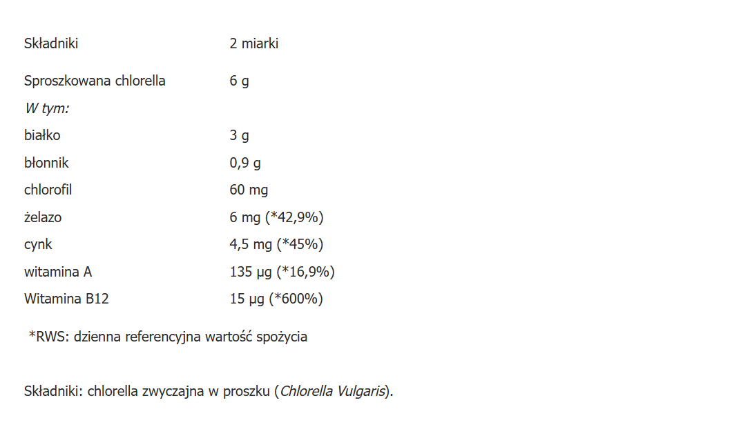 Chlorella Vulgaris to doskonałe źródło białka roślinnego, które stanowi podstawowy element budulcowy komórek organizmu. W jednym gramie chlorelli znajduje się około 0,6g białka, co czyni ją jednym z najlepszych roślinnych źródeł tego makroskładnika. Dla osób aktywnych fizycznie, sportowców, wegetarian i wegan, chlorella może być doskonałą alternatywą dla białka pochodzenia zwierzęcego, pomagając w regeneracji i budowie masy mięśniowej.