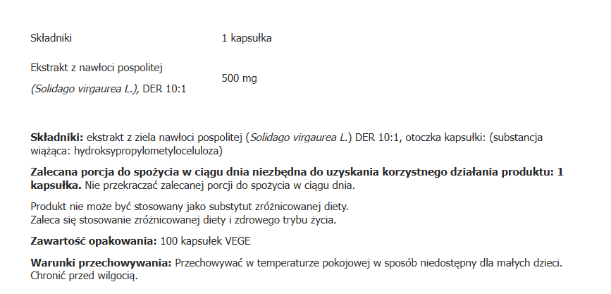 Najważniejsze cechy Solidago virgaurea L – ekstrakt 10:1, 500 mg