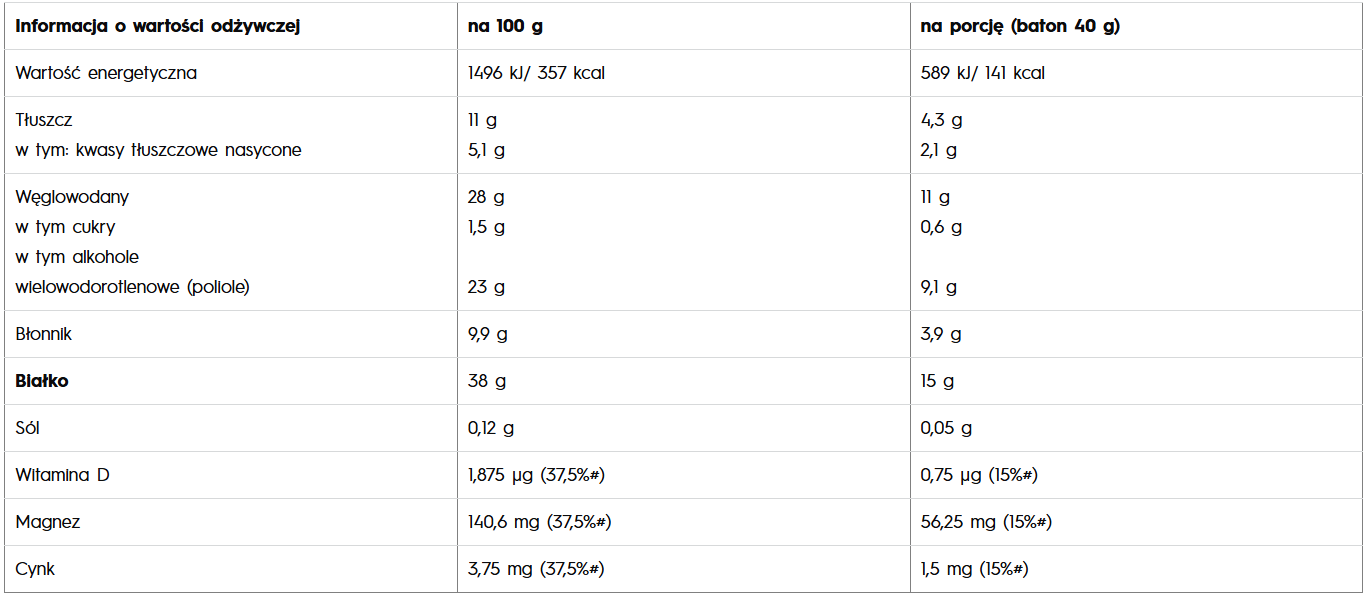 Wartości odżywcze mogą się różnić w zależności od smaku batona