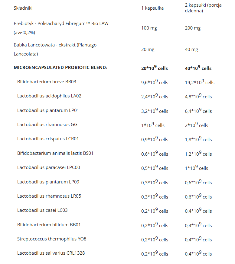 1. Wysoka zawartość probiotyków – 20 miliardów CFU na kapsułkę